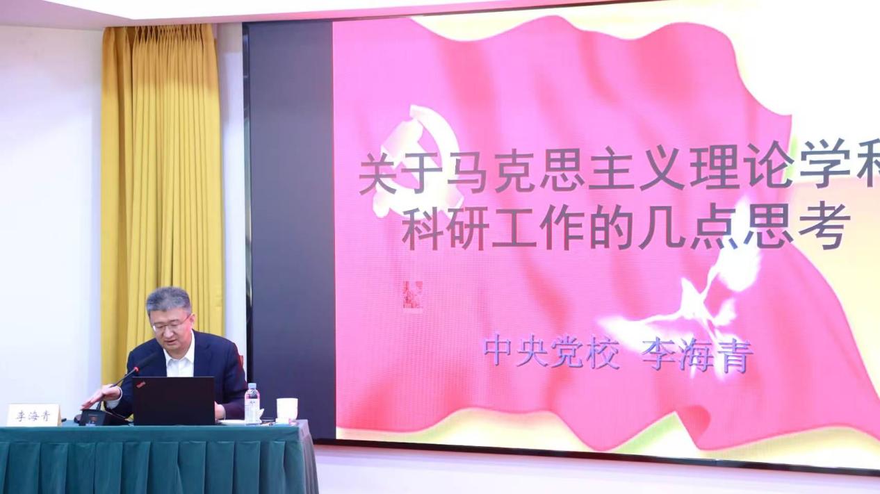 3月20日下午,马克思主义学院第二十三期“红蓝杏坛”在北院办公楼N501室举行。本期讲坛特邀中央党校(国家行政学院)马克思主义学院副院长、二级教授、博士生导师李海青教授作专题报告。报告会由院长吴卫卫主持,学院全体师生参加此次报告会。
